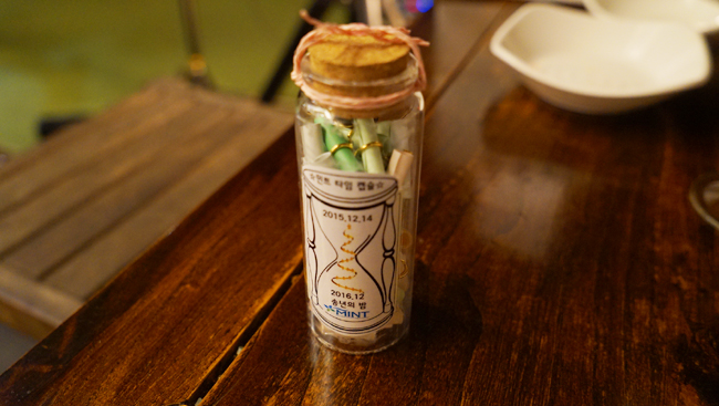 나에게 하고픈 말을 써서 유리병에 넣었어요