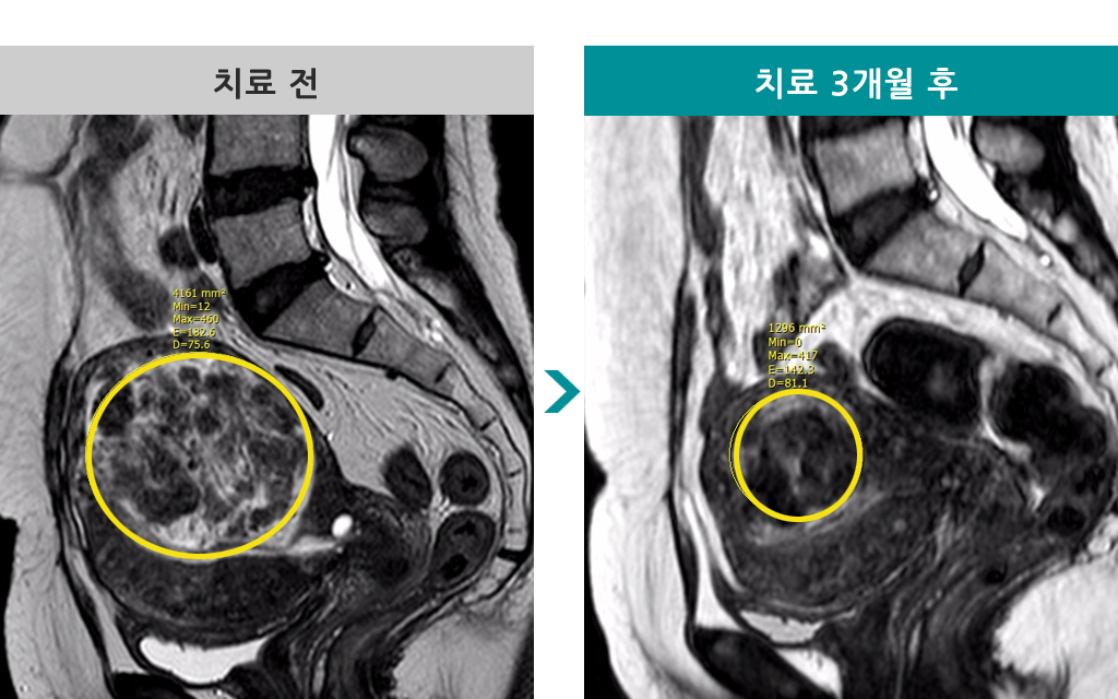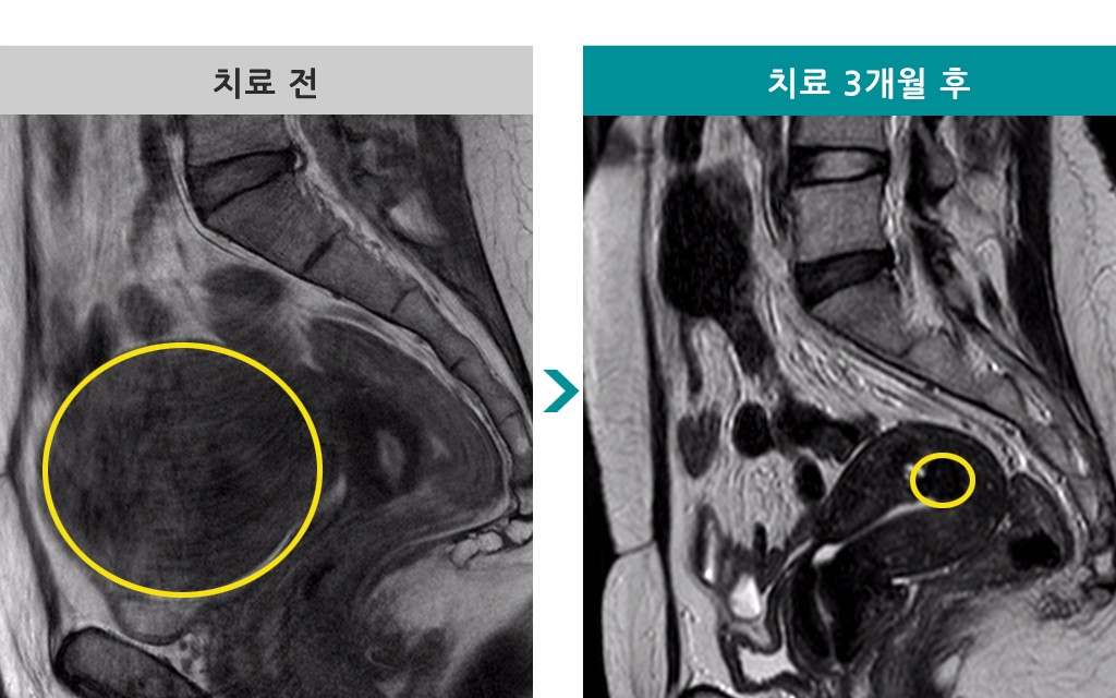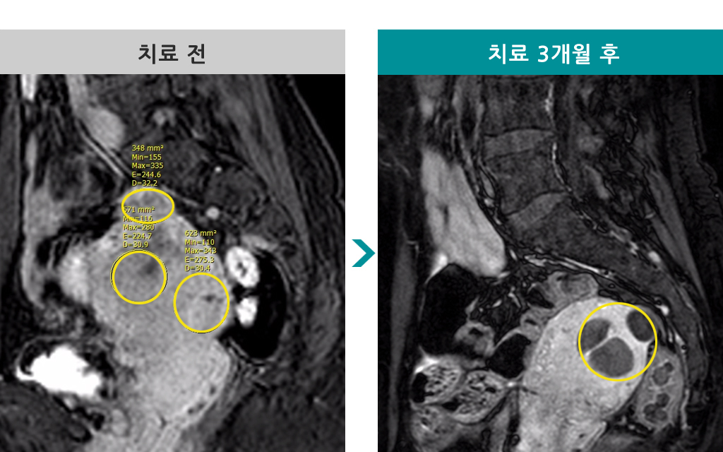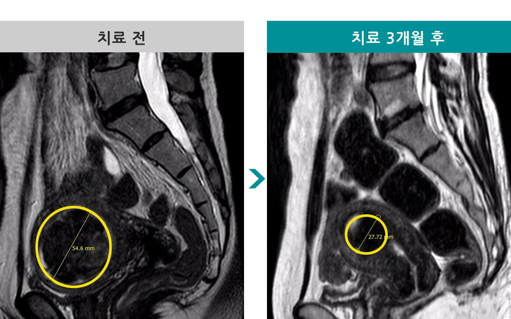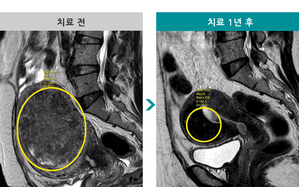 37세 [자궁근종 색전술] 전후 MRI사진 비교