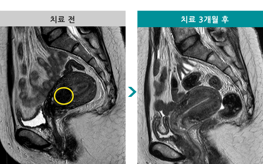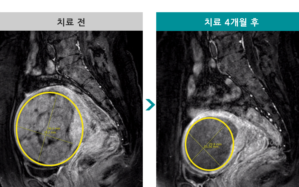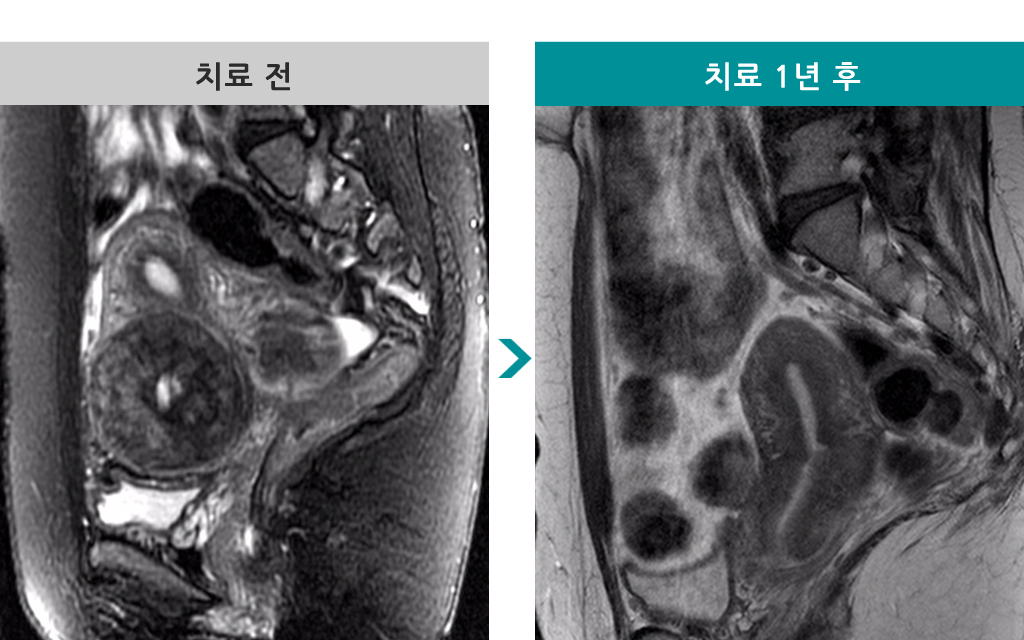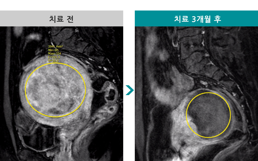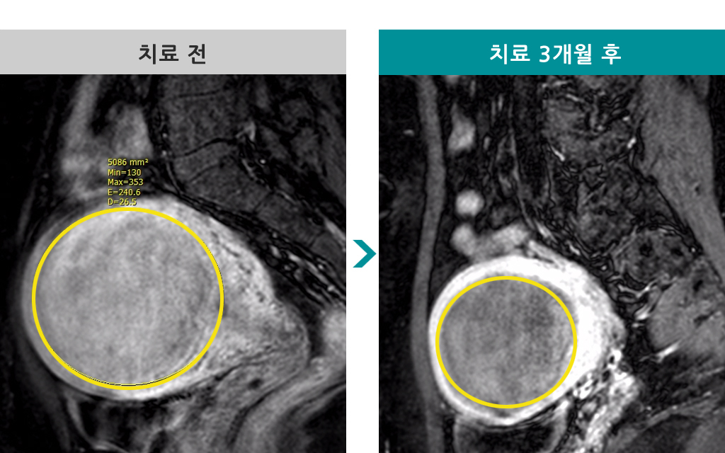 37세 [자궁근종 색전술] 전후 MRI사진 비교