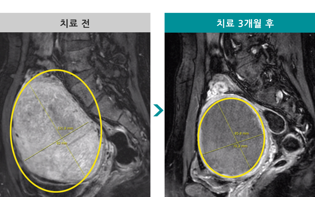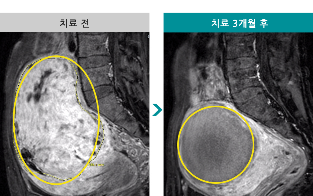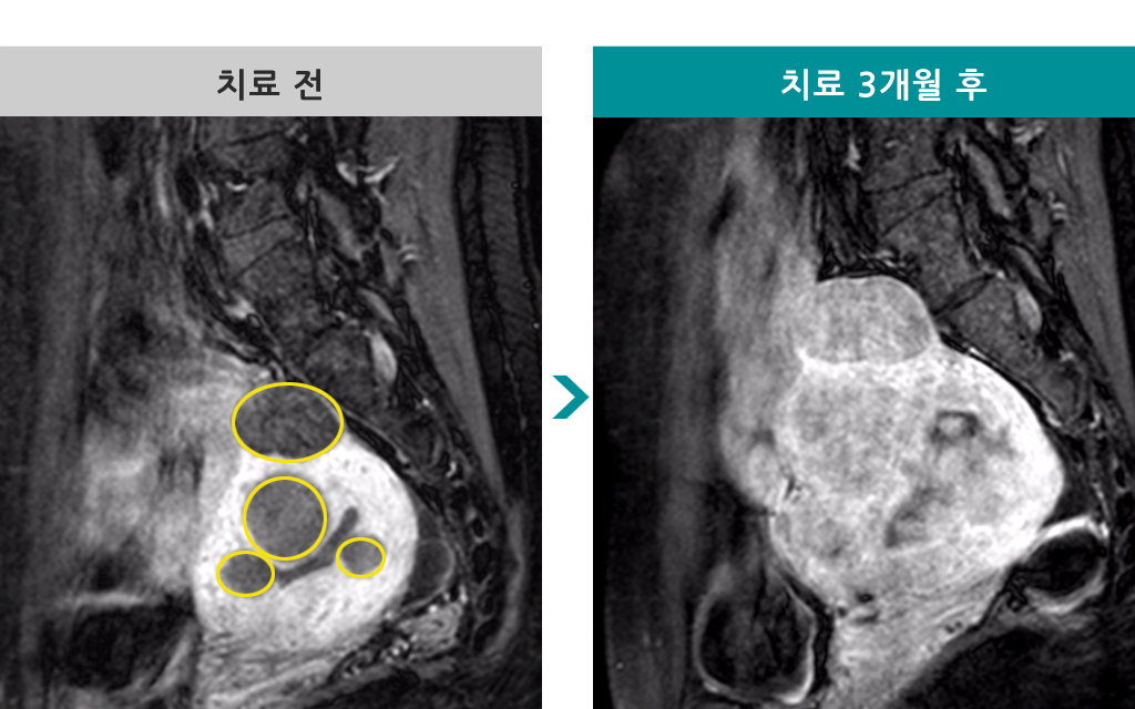 36세 [자궁근종 색전술] 전후 MRI사진 비교