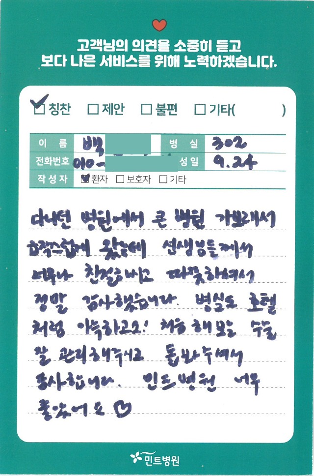 친절한 간호사님들 칭찬합니다!